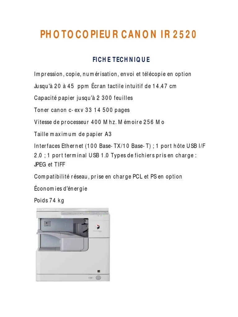 Remarque pour plus d'informations sur la configuration système, voir transfert de données vers un serveur de fichiers. Pilote photocopieur canon ir 4570. Sélectionnez dans la liste de pilote requis pour le catégorie: Problème de mon photocopieur canon ir 2520; L'imprimante bureautique multifonction canon imagerunner.